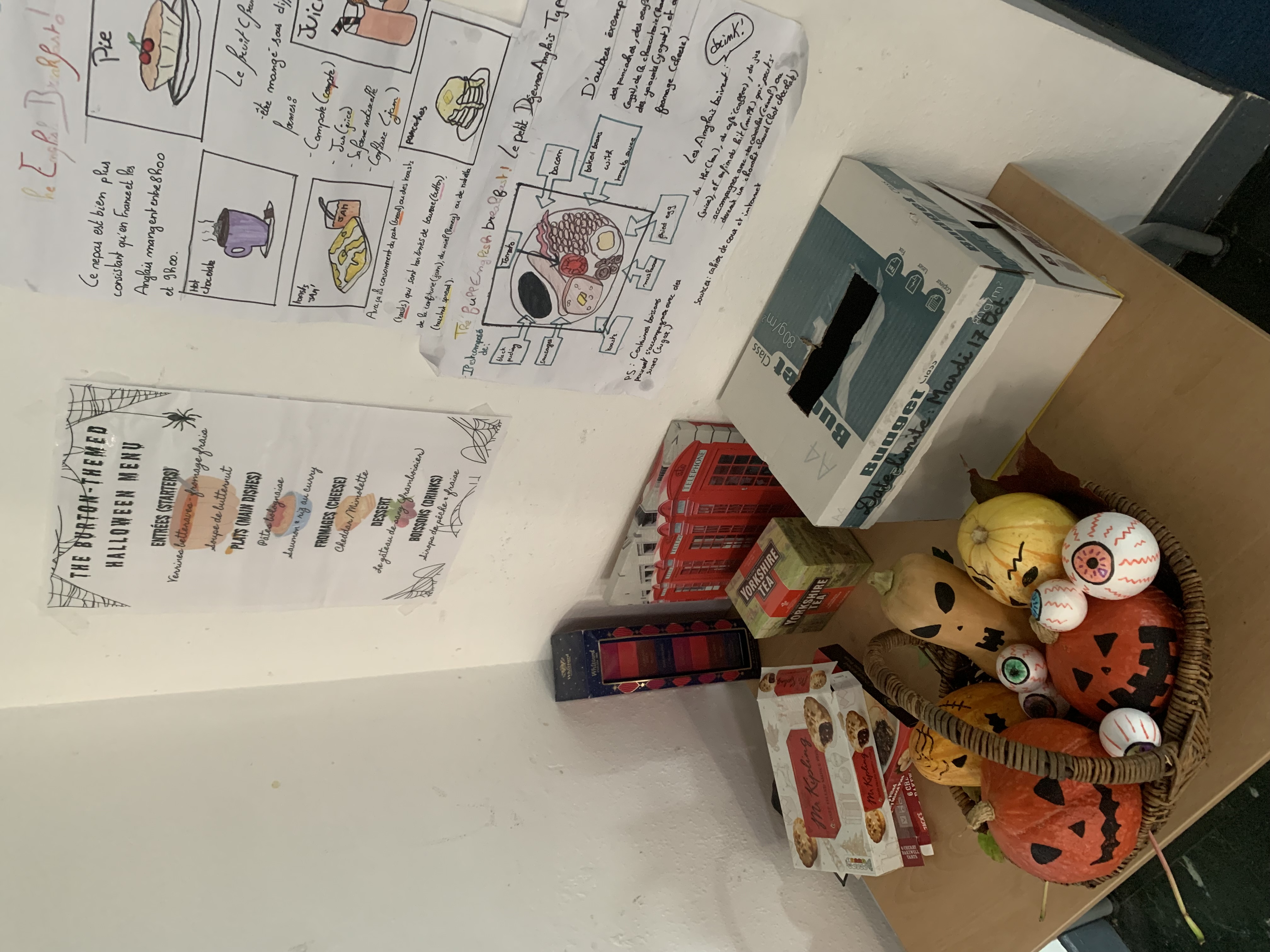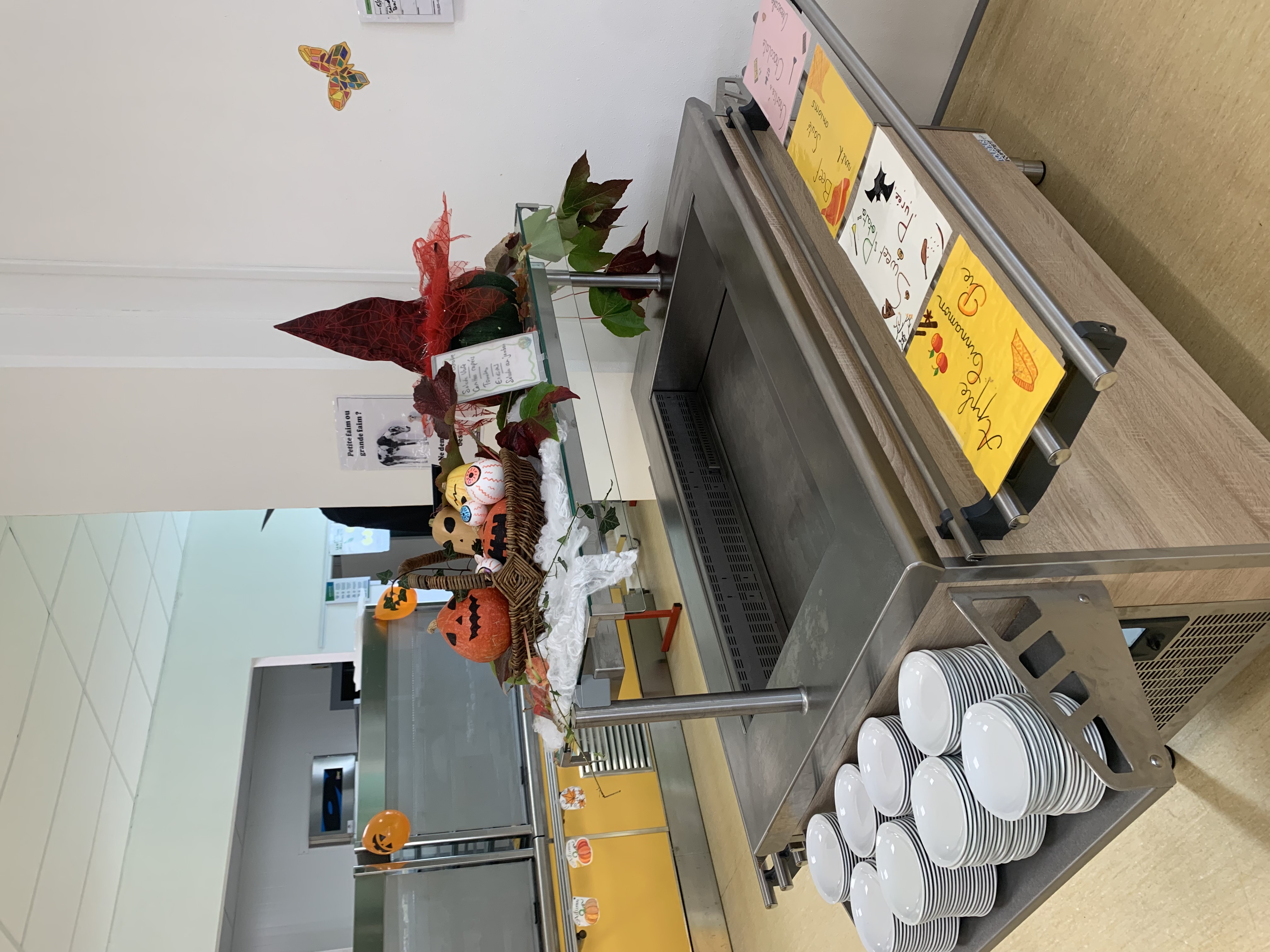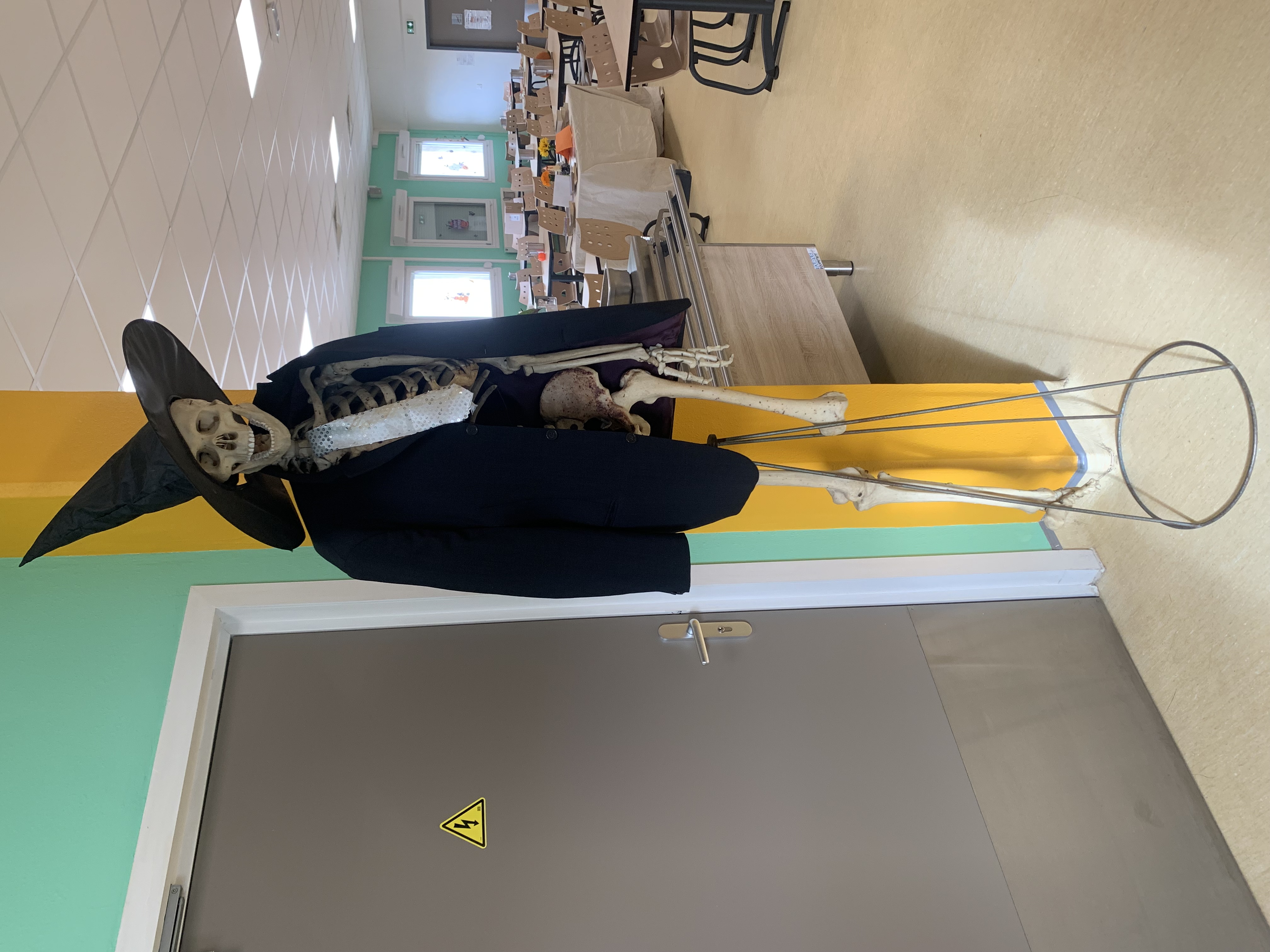 Ce jeudi 16 octobre 2025, les élèves et les personnels du collège ont pu se régaler de plats aux accents d'Halloween, grâce au travail mené par le groupe des Jeudis qui changent avec Miss Mugnier. Le self était également décoré aux couleurs de l'automne, et Arthur le squelette présent dans la salle de SVT (merci Mme Bervialle pour le prêt) a même pu changer d'air et arborer chapeau pointu et veste !