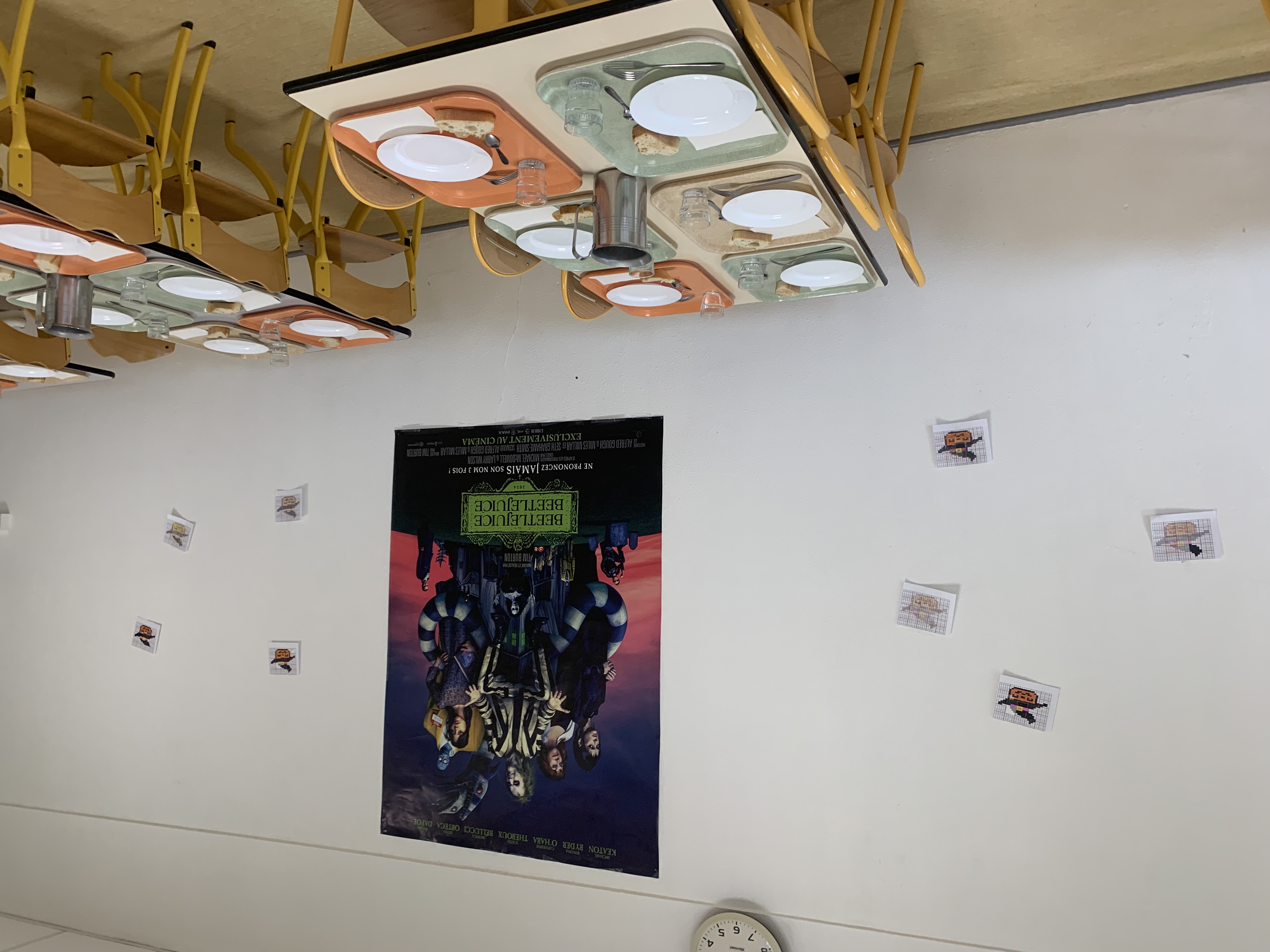 Au menu : verrines de betteraves et fromage frais et soupe de potimarron en guise d'entrées, pâtes bolognaise ou saumon & riz au curry en plats principaux, cheddar et mimolette en fromages, et en dessert, un savoureux « Gâteau de sang » (framboisier). Saurez-vous repérer les références à Tim Burton, étudié dans le carde de cette séquence ?